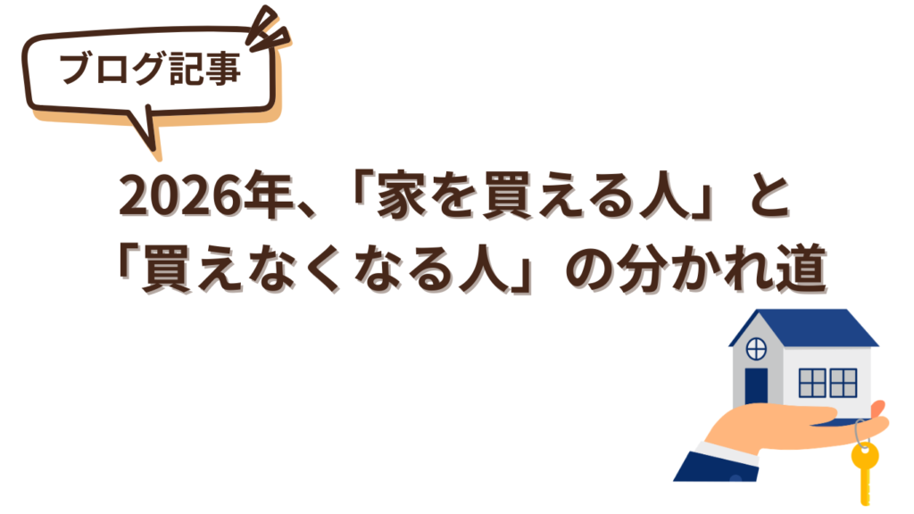 【ブログ】2026年、「家を買える人」と「買えなくなる人」の分かれ道── 不安定な時代に、自宅をどう守るか?